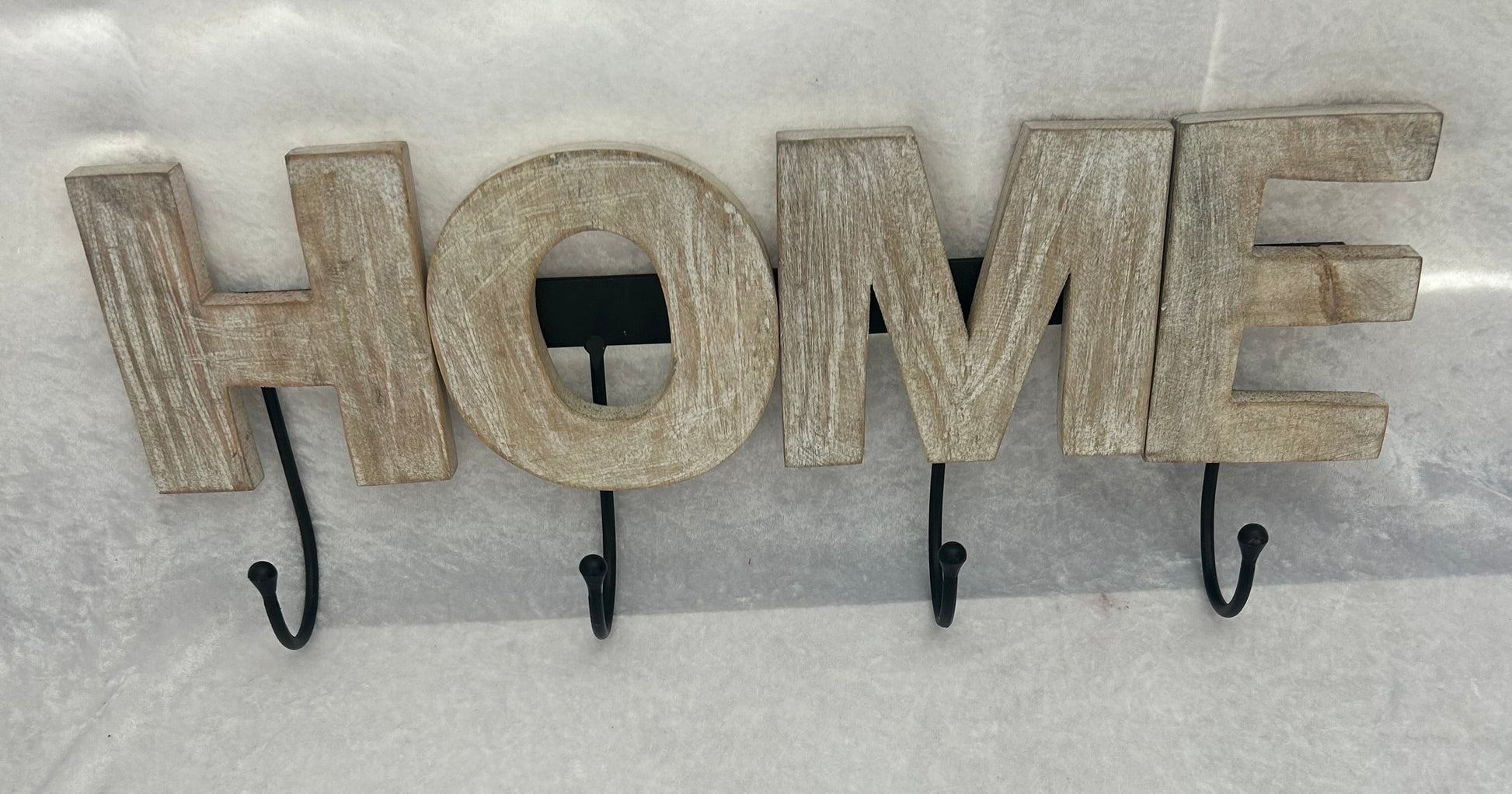 Wood and metal HOME coat rack. 22.5” x 9”.