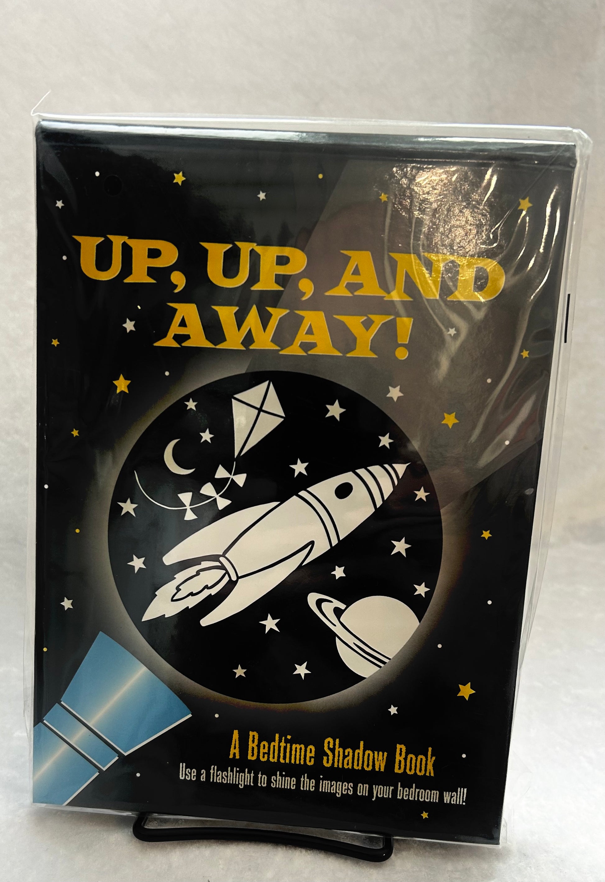 Children’s Shadow storybook. Each page has a disc to shine a flashlight through and cast the image on the ceiling or wall. Wonderful for the imagination!!